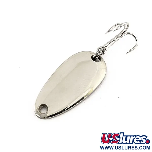 Na konkávní spodní straně této poniklované plandavky jsou jasně vyražena slova „LEN THOMPSON NO. 6“, která označují design, jenž je po desetiletí základem rybářských boxů. Nástraha měří přesně 2,5 cm (1") a váží lehkých 3,5 g (1/8 oz), což je velikost ideální pro jemný lov dravých ryb v různých vodních podmínkách. Jasný niklový povrch poskytuje čistý, reflexní povrch, který napodobuje šupiny malé rybky. Její kapkovitý tvar je specificky vyvážen tak, aby vytvářel pomalý kolísavý chod, což je technická vlastnost, díky níž se tato značka stala jasnou volbou pro lov štik, lososů a sivenů obrovských. Tento konkrétní kus, kód produktu 11270, je ve stavu 5/5, má velmi zachovalé tělo a ostrý, stříbrný trojháček. Hardware je bezpečně připevněn přes přesně vyvrtaný otvor v zadní části, takže je připraven k nahazování, trollingu nebo vertikálnímu vláčení.