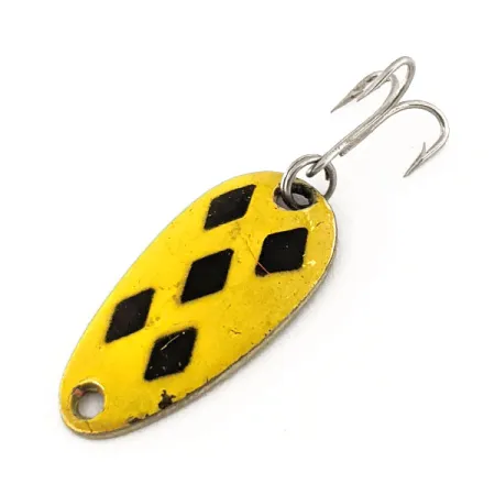 Tato kanadská klasika s mosaznou povrchovou úpravou na rubové straně nese hlubokou ražbu „LEN THOMPSON NO. 6“, která odkazuje na její dlouholetou tradici. Plandavka, vedená pod kódem 11313, má zářivě žlutý smaltovaný líc zdobený pěti výraznými černými kosočtverci. Váží 3,5 g (1/8 oz) a měří kompaktních 2,5 cm (1"), což z ní činí ideální volbu pro lehkou přívlač nebo trolling při lovu pstruhů a okounů. Tento exemplář je ve stavu 5/5, s výborně zachovalým lakem a čistým kovovým povrchem. Od roku 1929 používá Len Thompson tento specifický kapkovitý tvar k napodobení malých nástražních rybek – design, který zůstal po desetiletí prakticky nezměněn. Nástraha je osazena ostrým trojháčkem ve stříbrném provedení, který je připevněn standardním kroužkem v horní části těla.
