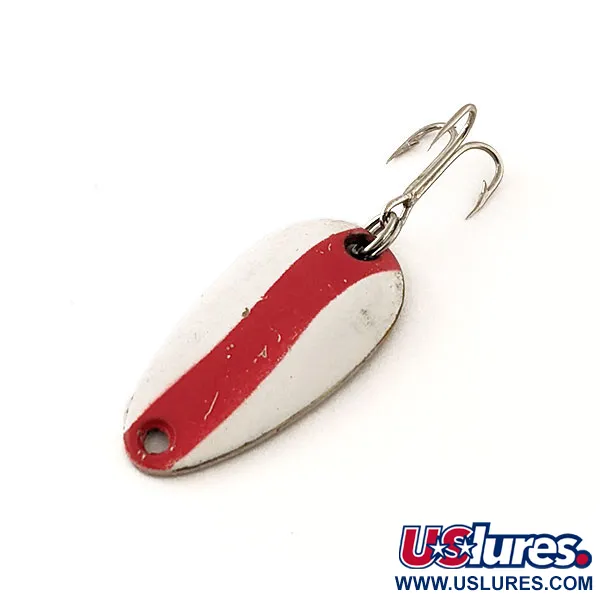 Tato kompaktní plandavka Len Thompson #6 měří přesně 2,5 cm (1") a nese odkaz kanadské značky, která vyrábí nástrahy již od roku 1929. Mosazné tělo je na přední straně opatřeno klasickým červeno-bílým pruhovaným vzorem, zatímco zadní strana má leštěný zlatý povrch s ražbou «LEN THOMPSON NO. 6». S hmotností 3,5 g (1/8 oz) je tato nástraha (Kód produktu: 12066) vyvážena pro pomalý kolísavý chod, který věrně napodobuje pohyb malé rybky. Osazení je robustní a zahrnuje jeden trojhák a silný kroužek pro vysokou odolnost při nahazování i jigování. Tento konkrétní kus je ve stavu 5/5, s čistou povrchovou úpravou lakovaných i kovových částí. Design, využívaný primárně k lovu pstruhů, lososů nebo okounů, zůstává po desetiletí spolehlivým standardem pro všechny rybáře.