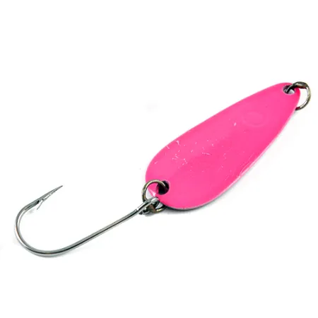 Tato plandavka v barvě Růžová / Nikl o délce 5,5 cm (2 1/4") má kapkovitý profil, který představuje klasický design prověřený generacemi rybářů. Zářivě růžový smalt na přední straně nabízí vysoce kontrastní vizuální efekt, zatímco zadní strana má povrchovou úpravu z leštěného niklu. Do kovové zadní části jsou vyraženy značky Les Davis a Hot Rod, což je dokladem její výroby v USA. Tento konkrétní model s produktovým kódem 2754 váží 14g (1/2oz) a je osazen velkým jednoháčkem a pevnými kroužky. Stav je 4/5, s pouze drobnými povrchovými stopami na smaltu a jasným, reflexním leskem na kovové straně. Její konstrukce zůstává svědectvím éry, kdy Luhr Jensen vyráběl tyto oblíbené modely Les Davis.