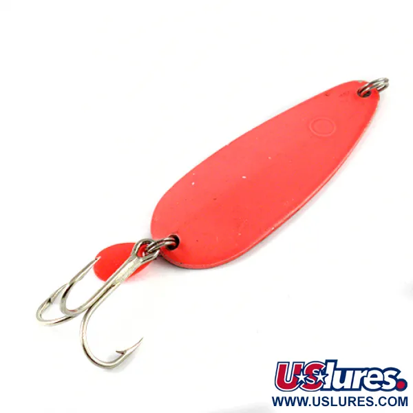 Značka „HOTROD“ jasně vyražená na poniklované zadní straně identifikuje tuto 32g (1 1/4 oz) plandavku jako robustní výrobek Luhr Jensen. Nástraha o délce 9 cm (3 1/2") je opatřena zářivě fluorescenční růžovou lícovou stranou, která kontrastuje s leštěným niklovým hřbetem pro všestranný vizuální profil. K zadnímu kroužku je vedle trojháčku připevněn malý červený plastový atraktor, který poskytuje sekundární vizuální lákadlo. Tento vintage exemplář vyrobený v USA, vedený pod kódem produktu 2896, je ve stavu 4/5, přičemž povrchová úprava i hardware zůstávají ostré a dobře definované. Je speciálně navržen pro těžké nahazování a trolling, kde je jeho hmotnost a profil potřeba k dosažení hlubokých zón.