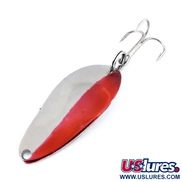 Výrazný červený diagonální pruh vytváří ostrý kontrast k leštěnému niklovému povrchu této vintage plandavky. S hmotností 7 g (1/4 oz) a délkou 4 cm (1 1/2") má kovové tělo hlubokou ražbu na zadní straně, která jej označuje za originální výrobek Seneca Lure z USA. Tento model s produktovým kódem 10917 pochází z doby před érou Acme na začátku 80. let, díky čemuž je gravírování „WIGL-LURE“ významným detailem pro sběratele. Nástraha je ve stavu 5/5, má čistý, reflexní povrch a zářivou barvu. Zůstává vybavena originálním kroužkem a trojháčkem.
