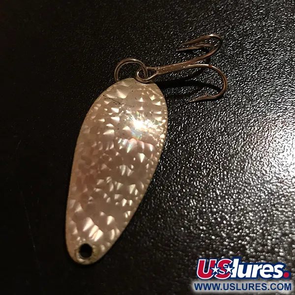 Tepané šupiny se vzorem „Crystal“ zachycují světlo na povrchu této 4 cm (1 1/2") vintage plandavky. Tato nástraha s výrazným označením „Little Cleo Wigl-Lure A Seneca Lure“ představuje původní éru výroby před akvizicí značky společností Acme na začátku 80. let. Povrchová úprava Crystal (Golden Scale) poskytuje hluboce strukturovaný povrch navržený tak, aby napodoboval lom světla na rybích šupinách. Plandavka o hmotnosti 7 g (1/4 oz) je osazena originálními komponenty a silným trojhákem, což dokládá klasické americké výrobní standardy té doby. Tento exemplář s produktovým kódem 11102 je ve vynikajícím stavu, s hodnocením 5/5 za zachovalý povrch a ostré ražby do kovu. Kapkovitý tvar těla je specificky vyvážen pro daleké nahazování a trolling.
