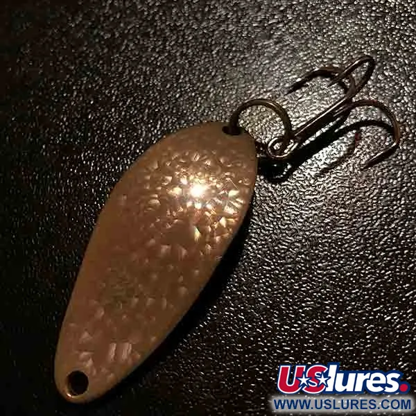 Tato vzácná varianta Seneca se vyznačuje povrchovou úpravou 'Crystal' nebo Golden Scale, která odráží světlo skrze složitý texturovaný vzor. S hmotností 7g (1/4oz) a délkou 4cm (1 1/2") nese tato plandavka rukopis řemeslného zpracování společnosti Seneca Lure Company z doby před jejím převzetím firmou Acme na začátku 80. let. Na zadní straně jsou klasické ražby 'LITTLE CLEO' a 'WIGL-LURE' spolu se značkou 'A SENECA LURE', která identifikuje její konkrétní vintage původ pod produktovým kódem 11940. S hodnocením stavu 5/5 si povrch zachovává původní lesk a kov zůstává čistý a bez vad. Tato v USA vyrobená plandavka využívá jednoduché spojení trojháčku pomocí kroužku, což ukazuje na přímočarý hardware typický pro toto období.