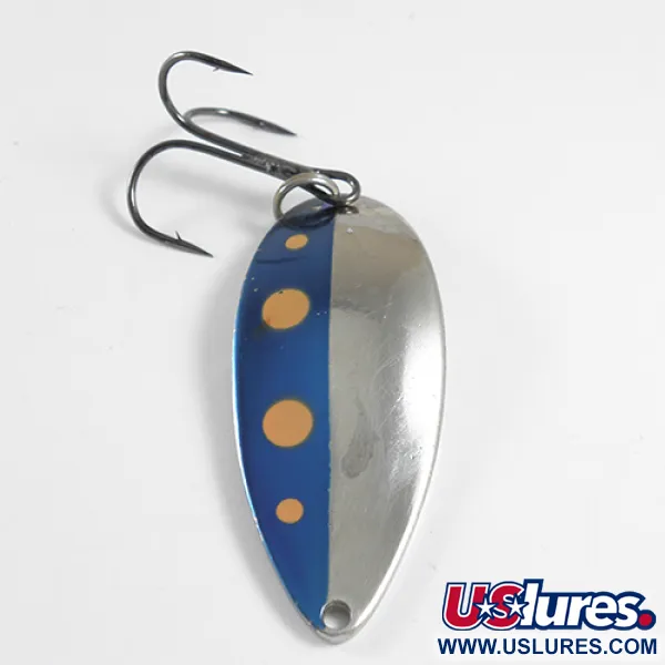 Tato plandavka od výrobce Seneca o hmotnosti solidních 21 g (3/4 oz) se vyznačuje klasickou povrchovou úpravou Modrá / Červená / Nikl s výrazným modrým panelem a tečkami v teplých tónech. Tento exemplář o délce 6,5 cm (2 1/2") nese produktový kód 1745 a je ukázkovým příkladem původního designu Seneca Lure z doby předtím, než značku počátkem 80. let převzala společnost Acme. Na zadní straně je hluboce vyražena slavná tanečnice „Hula Girl“ a značka „WIGL LURE“, což je detail vyhledávaný sběrateli, kteří věří, že právě tato silueta byla tajemstvím slávy této nástrahy. Její leštěný niklový povrch i původní osazení jsou dobře zachovalé, což odpovídá hodnocení stavu 4/5. Silnostěnné kovové tělo je vyzbrojeno robustním trojháčkem, zatímco na horní a spodní straně je jasně vyražena hmotnost a ikonický název Little Cleo.