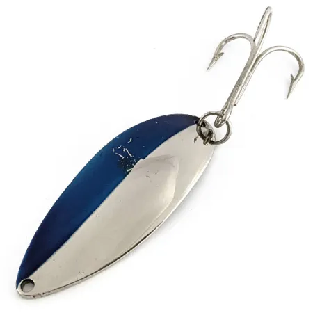 Přední strana rozdělená na sytě modrou a leštěný chrom dělá z této plandavky od společnosti Seneca vynikající ukázku historického vybavení. Při délce 6,5 cm a hmotnosti 21 g působí masivním dojmem typickým pro ranou produkci. Na zadní straně je do kovu zřetelně vyražena ikonická tanečnice „Hula Girl“, která je poznávacím znamením éry Seneca Lure Company před akvizicí společností Acme na začátku 80. let. Sběratelé tento specifický znak tanečnice často vyhledávají, protože z pozdějších masově vyráběných verzí byl odstraněn. Tento kus s produktovým kódem 22171 je ve vynikajícím stavu s hodnocením 5/5. Ražba na zadní straně rovněž potvrzuje původ od Seneca Tackle Co. a uvádí hmotnost pro snadnou identifikaci. V upevňovacím bodě se nachází čistý kroužek propojující tělo s původním trojháčkem.
