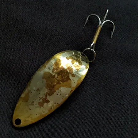Solidní hmotnost 14 g dodává této plandavce charakteristický projev, navržený pro dosažení hlubších vrstev vodního sloupce během navíjení. Tento exemplář od Seneca Lure Co. o délce 5,5 cm je na zadní straně opatřen ikonickou ražbou tanečnice „Hula Girl“ spolu s označením značek „Wigl Lure“ a „Little Cleo“. Právě toto gravírování bylo poznávacím znamením původní produkce v USA, než se značky v 80. letech ujala firma Acme a symbol tanečnice z forem odstranila. Povrchová úprava v provedení nikl/bronz u tohoto kusu (kód 22211) vykazuje viditelné opotřebení, kde ztenčená vrstva niklování odhaluje podkladový kov, což odpovídá hodnocení stavu 3/5. Nástraha zůstává osazena ostrým trojháčkem a pevným spojovacím kroužkem v zadní části, čímž zachovává původní konfiguraci komponentů oblíbenou mezi sběrateli náčiní Seneca.