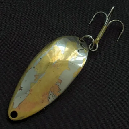 Tato klasická plandavka o hmotnosti 18 g (2/3 oz) představuje kus rybářské historie od společnosti Seneca Lure. Na zadní straně najdete legendární ražbu „Hula Girl“ spolu s nápisem „WIGL LURE“, což je detail, od kterého se upustilo poté, co značku v 80. letech převzala firma Acme. Při délce 5,5 cm (2 1/4") se tento exemplář vyznačuje výraznou trojtónovou povrchovou úpravou z niklu, mosazi a mědi. Hodnocení stavu 3/5 odráží poctivý charakter nástrahy, která má něco za sebou, přičemž původní pokovení místy ustupuje a odhaluje hřejivé kovové odstíny pod ním. Pro sběratele amerického náčiní představuje tento konkrétní model (kód produktu 22427) éru před zjednodušením designu. Výbava zahrnuje robustní kroužek a sestavu s trojháčkem, která je připravena k nahazování i trollingu. Očko na užším konci poskytuje jednoduchý a přímý bod pro připevnění vlasce nebo návazce.