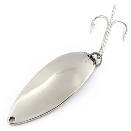 Na vyleštěné chromované zadní straně této plandavky o hmotnosti 3/4 oz (21 g) je vyražena ikonická postava tanečnice, která je poznávacím znamením původní produkce společnosti Seneca Lure známé jako Hula Girl. S délkou 2 1/2 palce (6,5 cm) tento konkrétní kus představuje éru předtím, než značku začátkem 80. let převzala společnost Acme a následně odstranila charakteristický motiv tanečnice z výrobních nástrojů. Mnoho zkušených rybářů tvrdí, že právě tato grafika upevnila pověst nástrahy Little Cleo jako mimořádně úspěšné u vody. Tato nástraha s produktovým kódem 22881 se vyznačuje tělem ze silného kovu a velkým trojháčkem upevněným v pevném kroužku. Povrch vykazuje vysoký lesk a stav tohoto kusu je solidních 5/5. Hluboká ražba na zadní straně jasně zobrazuje název Seneca a původ v USA, což z ní činí autentický kousek historie amerického rybářského náčiní.