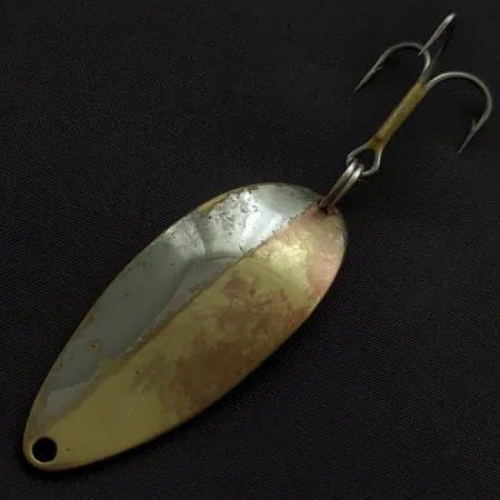 Rozdělení povrchové úpravy mezi zlato a nikl dodává této 14g plandavce výrazný odlesk, který sběratelé okamžitě rozpoznají jako klasiku. Na zadní straně je jasně vyražen název značky „Little Cleo“ spolu se jménem „Wig-L-Lure“, což značí její původ u společnosti Seneca Lure. Určujícím znakem tohoto exempláře s katalogovým kódem 23320 je ikonický obrázek tanečnice „Hula Girl“ gravírovaný na zadní straně – detail, který byl postupně odstraněn poté, co společnost Acme počátkem 80. let koupila firmu Seneca. Plandavka o délce 5,5 cm si zachovává své původní vysoce kvalitní pokovení. Osazení tvoří robustní trojháček připevněný pomocí kroužku, přičemž na ramínku háčku je malá žlutá bužírka. Pro mnohé nadšence do vintage vybavení je právě přítomnost tanečnice tím, co upevnilo legendární status této nástrahy v rybářském světě. Tento konkrétní kus nebyl používán a zůstává ve výjimečném stavu.