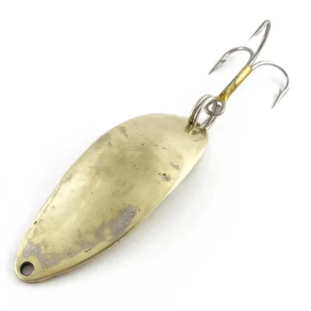 Mosazné odlesky a výrazná rytina tanečnice definují tento klasický kousek o délce 5,5 cm (2 1/4"). Tato plandavka Little Cleo (Hula Girl) s hmotností 14 g (1/2 oz) nese vzácnou originální ražbu „WIGL LURE“ a slavnou siluetu tanečnice hula, kterou sběratelé vyhledávají. Vyrobeno společností Seneca Lure ještě před akvizicí značky firmou Acme na začátku 80. let. Tato konkrétní verze (kód produktu 23492) představuje éru, kdy byla grafika klíčovou součástí identity nástrahy. Zlatý povrch vykazuje známky používání a povrchovou patinu, což odpovídá hodnocení stavu 3/5, přesto zůstává rytina na vypouklé straně jasně viditelná. Robustní trojháček je k zadní části připevněn pomocí pevného kroužku, zatímco v přední části se nachází jeden otvor pro navázání. Rybáři historicky přisuzovali úspěch tohoto designu právě oné ikonické grafice tanečnice, která z pozdějších výrobních sérií zmizela.