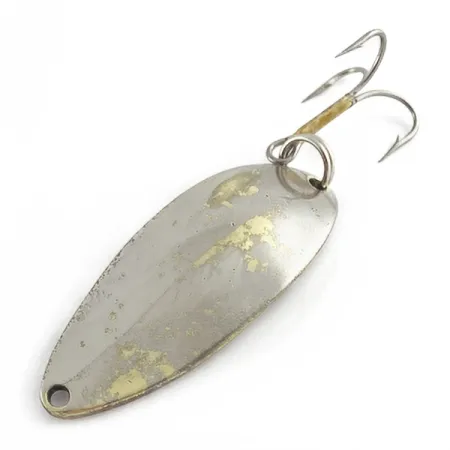 Povrch této 5,5 cm dlouhé plandavky tvoří kombinace niklového a zlatého provedení, která nese známky používání ve vodě. Tento konkrétní kus s produktovým kódem 23493 je sběratelsky vyhledávaná verze „Hula Girl“, vyrobená společností Seneca Lure v USA. Na konkávní zadní straně je stále patrná ikonická ražba tanečnice hula spolu s označením „LITTLE CLEO“ a „WIG LURE“ – což je prvek, který byl po převzetí výroby společností Acme na začátku 80. let proslule odstraněn. Mnoho zkušených rybářů tvrdí, že právě tato specifická ražba byla tajemstvím legendární účinnosti této nástrahy. S hmotností 14 g (1/2 oz) nabízí dostatečnou váhu pro daleké nahazování. Původní osazení, včetně kroužku a trojháčku, vykazuje známky svého stáří, což odpovídá hodnocení stavu 3/5. Jedná se o autentický kus rybářské historie z doby předtím, než byl design zjednodušen pro moderní masovou produkci.
