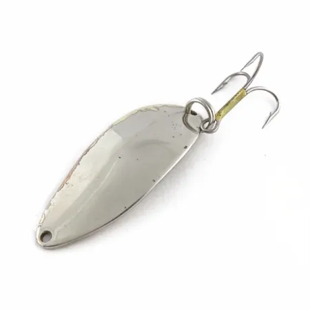 Tento exemplář od společnosti Seneca Lure s ikonickou vyraženou tanečnicí „Hula Girl“ na zadní straně představuje klasický kus americké rybářské historie. Plandavka o hmotnosti 1/2 oz (14 g) má kovový povrch v kombinaci niklových a zlatých tónů. Tento konkrétní model s produktovým kódem 23766 nese původní označení Seneca, které pochází z doby před akvizicí značky firmou Acme na začátku 80. let. Mnoho rybářů vyhledávalo právě tuto verzi kvůli symbolu tanečnice, což je detail, který byl u pozdějších sérií vynechán. Tělo o délce 2 1/4" (5,5 cm) je osazeno trojháčkem, který má u očka ovin ze žluté nitě. Nástraha vykazuje známky používání a uložení v rybářských krabičkách, její stav odpovídá hodnocení 3/5. Konstrukci tvoří kovový plát ve tvaru kapky s jedním spojovacím kroužkem pro uchycení háčku k ocasní části.