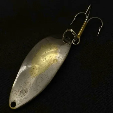 Povrchová úprava v kombinaci niklu a zlata se prolíná na těle této 14g (1/2 oz) plandavky a vytváří dvoubarevný vzhled, který sběratelé vintage nástrah okamžitě poznají. Vyrobena firmou Seneca ještě předtím, než značka na začátku 80. let přešla pod Acme, nese zadní strana nástrahy ikonickou ražbu tanečnice Hula Girl spolu s názvem Little Cleo. Mnoho zkušených rybářů na tuto konkrétní verzi nedá dopustit a věří, že samotná rytina tanečnice dodává nástraze kousek štěstí při lovu. Kovové tělo měří 5,5 cm (2 1/4") a nese jasně vyražené značení Wigg-L-Lure. Nástraha s produktovým kódem 23841 je osazena trojháčkem a kroužkem. Odpovídajíc času strávenému ve vodě, je stav nástrahy solidních 3/5, což vykazuje poctivé opotřebení nástroje, který byl aktivně používán.