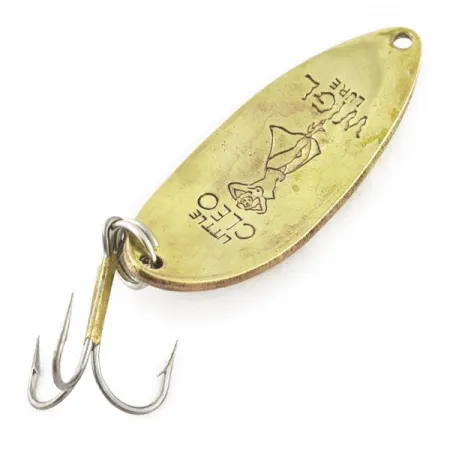 Tato vintage plandavka o hmotnosti 14 g (1/2 oz) představuje klasický profil, díky kterému se nástrahy Seneca staly základem rybářských boxů poloviny minulého století. Zlatá přední strana nese ražbu textu „LITTLE CLEO“ a „WIGL LURE“, soustředěnou kolem ikonického gravírování tanečnice „Hula Girl“. Tělo o délce 5,7 cm (2 1/4 palce) přechází v poniklovanou zadní stranu, kde jsou patrné známky používání odpovídající hodnocení stavu 3/5. Tyto modely z éry Seneca jsou vysoce ceněny ve srovnání s moderními verzemi Acme, protože si zachovaly detailní vyobrazení tanečnice. Výbava zahrnuje pevný kroužek s klasickým trojháčkem, určeným pro tradiční přívlač nebo trolling. Nástraha, označená produktovým kódem 24089, si zachovává svou strukturální integritu i přes mírné opotřebení niklování na zadní straně.