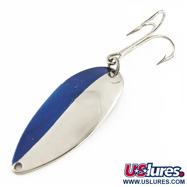Tato plandavka o hmotnosti 21 g (3/4 oz) s tmavě modrým pruhem na leštěném niklovém podkladu je prvotřídní ukázkou amerického rybářského řemesla z poloviny minulého století. Sběratelé okamžitě poznají charakteristickou postavu tanečnice vyraženou na zadní straně – často nazývanou Hula Girl – což je typický znak původní produkce společnosti Seneca Lure předtím, než značka počátkem 80. let přešla pod firmu Acme. S délkou 6,5 cm (2 1/2") nese tento exemplář produktový kód 24174 a zůstává ve výjimečném stavu 5/5, přičemž si zachovává ostré linie gravírované postavy, o níž mnozí rybáři tvrdí, že byla tajemstvím slávy této nástrahy. Masivní kovová konstrukce a robustní stříbrný trojháček odrážejí její původ v USA a byly navrženy speciálně pro daleké nahazování. Její reflexní povrch je pozoruhodně čistý a s věkem si zachovává brilantní lesk jak na lakovaných, tak na kovových částech.