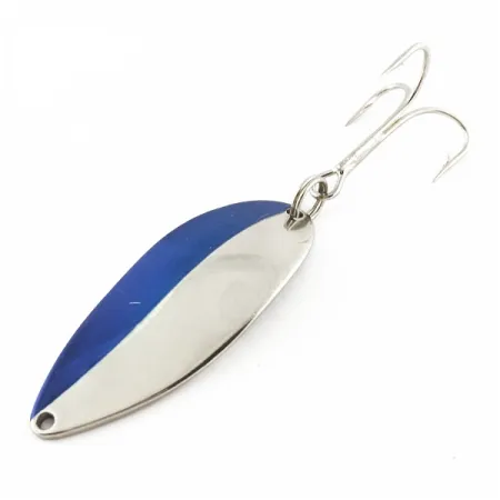 Tato plandavka o hmotnosti 3/4 oz (21 g) působí robustním dojmem těžké nahazovací lžíce. Povrchová úprava v kombinaci niklu a modré barvy je mimořádně zachovalá, což dokládá vysokou kvalitu pokovování typickou pro výrobu společnosti Seneca Lure před jejím převzetím firmou Acme na počátku 80. let. Na rubové straně těla o délce 2 1/2" (6,5 cm) se nachází charakteristická ražba „Hula Girl“ – prvek, kterému mnozí zkušení sběratelé přisuzují legendární pověst modelu Little Cleo. Tento konkrétní model s produktovým kódem 24198 si zachovává veškeré původní osazení, včetně pevného trojháčku a kroužku. Detail ražby je typickým znakem těchto raných nástrah vyráběných v USA, protože moderní verze od společnosti Acme již postavu tanečnice neobsahují. Nález kusu v takto zachovalém stavu 5/5 je potěšením pro ty, kteří oceňují přechodné období americké výroby rybářského náčiní. Modrý nátěr pokrývá polovinu konvexní strany a vytváří ostrý kontrast s leštěným niklovým povrchem.