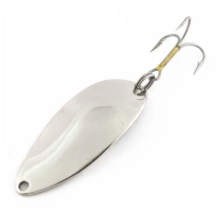 Tato poniklovaná plandavka s výrazným raženým motivem tanečnice na zadní straně představuje originální design z éry Seneca Lure Co. Těžké kovové tělo o hmotnosti 1/2 oz (14 g) má široký profil určený pro daleké náhozy. Lesklý niklový povrch pokrývá 5,5 cm (2 1/4") tělo, na jehož zadní straně jsou jasně viditelná označení „LITTLE CLEO“ a „SENECA LURE CO.“. Rybáři často vyhledávají právě tento detail Hula Girl, který byl stažen z výroby poté, co společnost na začátku 80. let získala firma Acme. Tento exemplář s produktovým kódem 24590 vykazuje čistý povrch s hodnocením stavu 5/5. Výbava se skládá z jednoho trojháčku připevněného k zadnímu očku.