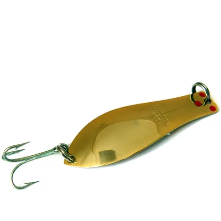 Tato klasická plandavka o délce 2 1/2" (6,5 cm) s leštěným zlatým povrchem odráží řemeslnou zručnost divize Prescott Spinner pod značkou Fred Arbogast. Tělo modelu Little Doctor 265 (kód produktu: 0894) o hmotnosti 1/3 oz (10 g) nese na konvexní straně jasné razítko výrobce. Dvě malé červené tečky umístěné poblíž očka pro uchycení jsou charakteristickým detailem tohoto konkrétního modelu vyrobeného v USA. Se stavem hodnoceným 5/5 je zlacení pozoruhodně čisté, doplněné originálním trojhákem a robustními kroužky. Tato kovová nástraha je určena pro přívlač nebo trolling v různých hloubkách.