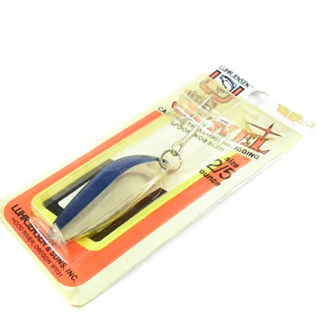 Tato vintažní kovová plandavka o hmotnosti přesně 1/2 oz (14 g) se vyznačuje klasickým barevným provedením Nikl / Modrá, které v originálním balení zůstalo čisté a jasné. Tento exemplář Luhr Jensen Little Jewel, označený produktovým kódem 2883, je nepoužitý a zůstává připevněn k autentické tovární kartě z éry Hood River v Oregonu. Plandavka měří 2 1/4" (5,7 cm) a její konstrukce je přizpůsobena různým technikám, včetně přívlače, trollingu a jiggingu. Zadní strana karty poskytuje informace o zamýšleném použití a doporučuje ji pro lov v hlubokých jezerech nebo ve velkých, prudkých tocích. Barva je na vintažním štítku specificky uvedena jako NKL/NEON BL ST a plandavka je osazena robustním kroužkem v místě uchycení vlasce.