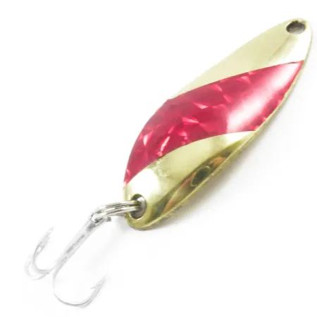 Tato plandavka s jasnou ražbou značky „Little Jewel“ a Luhr Jensen USA na své konkávní zadní straně představuje klasickou éru americké výroby rybářského vybavení. Přední strana se vyznačuje působivou povrchovou úpravou Zlatá / Červená, kde živý, fasetovaný červený diamantový vzor kontrastuje s leštěným zlatým kovem. Tento vyřazený vintage poklad o délce 4,7 cm (1 3/4") a hmotnosti 9 g (1/3 oz) je identifikován pod produktovým kódem 3174. Je vybaven robustním kroužkem a ostrým trojháčkem, určeným pro přívlač nebo trolling. Celkový stav je hodnocen 5/5, což ukazuje na velmi zachovalý povrch, který vyzdvihuje kvalitu starých výrobních metod společnosti Luhr Jensen předtím, než byl tento model stažen z nabídky.