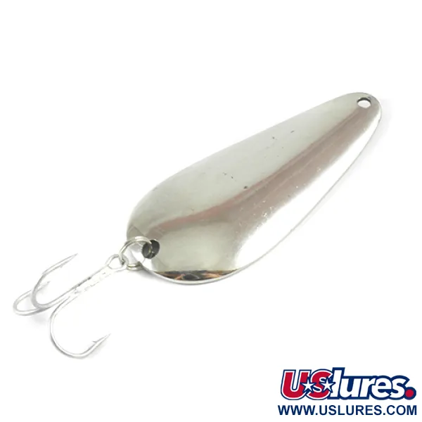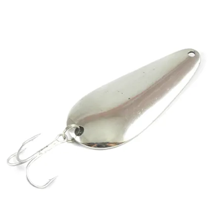 Niklová povrchová úprava, jako je ta na této 3" (7,5 cm) plandavce, byla základem značky Lindy / Little Joe a nabízela vysokou viditelnost v různých vodních podmínkách. Tato klasická kovová plandavka s vyraženým názvem „Little Joe“ váží 3/5 oz (17 g), což z ní činí solidní volbu pro přívlač i trolling. Tento exemplář s produktovým kódem 2971 ukazuje přímočarou americkou výrobu, která definovala produkci značky v USA. Trojháček je bezpečně připevněn pomocí robustního kroužku, což je jednoduchý, ale účinný design, který prověřil čas. Pokud jde o stav, reflexní povrch zůstává jasný a dobře zachovalý, což si zaslouží hodnocení 4/5. Při bližším pohledu na konvexní stranu jsou čisté linie kapkovitého tvaru charakteristické pro design plandavek z poloviny století, určený k zachycení světla. Otvor v hlavové části je čistě vyražen, připraven pro karabinku nebo přímý uzel.