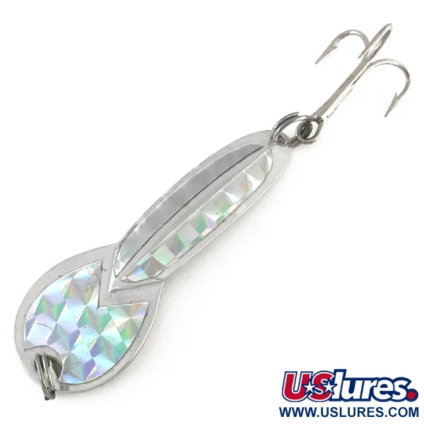 Prismatické geometrické segmenty pásky zachycují světlo na lícové straně této poniklované plandavky a dodávají jejímu kovovému profilu víceúhlý záblesk. S hmotností 17g (3/5oz) a délkou 7cm (2 3/4") je tato Glen Evans Loco 3 solidní volbou pro daleké náhozy nebo udržení hloubky při trollingu. Na zadní straně je vyraženo označení „LOCO 3“, které identifikuje tento kus jako produktový kód 8100. Sběratelé ocení stav 5/5, protože povrchová úprava i hardware zůstávají pozoruhodně čisté a zachovalé. Je navržena pro živou prezentaci, často se používá v mělkých vodách do hloubky 1 m, kde je její silueta a reflexní vlastnosti nejúčinnější. Tento exemplář je osazen originálními kroužky a silným trojháčkem.