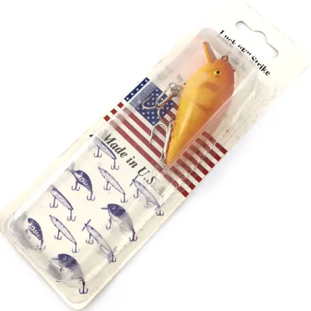 S délkou 5 cm (2") odráží profil tohoto modelu Rogers Big Jim klasický americký design z historie značky Luck E Strike. Tato nástraha o hmotnosti 7 g (1/4 oz) s produktovým kódem 21279 se vyznačuje plovoucím chodem, který je vhodný pro lov v mělkých vodách. Povrchová úprava se skládá z oranžovo-žlutého těla přecházejícího do tmavšího odstínu podél hřbetu, doplněného jednoduchým detailem žlutého oka. Rybáři tento model tradičně využívali k přívlači i trollingu při lovu štik, okounů a bolenů. Výbava zahrnuje dva stříbrné trojháčky umístěné na břiše a ocase. Nástraha je navržena pro práci v horní části vodního sloupce a dosahuje hloubky 0,3–0,9 m (1–3 ft). Tento exemplář je nepoužitý a zůstává v původním vintage blistru, který zdůrazňuje jeho původ „Made in U.S.A.“ z Cassville ve státě Missouri. Kartonový podklad nese klasické logo Luck 'e' Strike a vyobrazení různých tvarů nástrah vyráběných v té době.