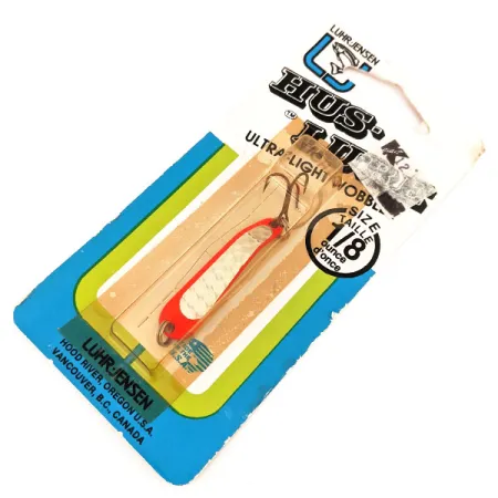 Tato kompaktní plandavka o délce 1 1/2" (4 cm) zaujme výrazným oranžovým okrajem v kombinaci s niklovaným středem s voštinovým vzorem. Hus-lure o hmotnosti 1/8 oz (4 g) s produktovým kódem 12673 je skvělým příkladem amerického řemesla společnosti Luhr Jensen z jejich závodu v Hood River v Oregonu. Nástraha je osazena ostrým bronzovým trojháčkem a je navržena pro lov s lehkým náčiním a precizní nahazování. Díky hodnocení stavu 6 je nástraha nepoužitá a zůstává zatavená v původním dobovém balení, které uchovalo vysoce viditelný povrch v kombinaci Orange / Nickel. Luhr Jensen tento model na obalu výslovně označil jako „Ultra-Light Wobbler“, určený pro rybáře cílící na pstruhy, okouny nebo menší ryby s lehkou výbavou. Na zadní straně obalu je dokonce uvedeno původní označení barvy „FIRE/SLVR P-LITE“ a informace pro objednání z jejich klasického katalogu „Legends“.