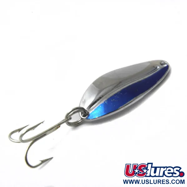 Niklový a modrý povrch rozdělují kapkovitý profil této v USA vyrobené plandavky. Tento exemplář o hmotnosti 1/4oz (7,5g) a délce 1 1/2" (4cm) představuje klasický styl výroby společnosti TODDCO z poloviny století. Výrobce byl známý produkcí odolných kovových nástrah oblíbených pro jejich nahazovací vzdálenost. Poniklovaný povrch na jedné polovině přechází v zářivý modrý pruh na druhé, navržený tak, aby vytvářel specifický vizuální odlesk. Main Liner, uváděný pod produktovým kódem 0453, se vyznačuje konvexním tvarem těla s výrazným středovým hřbetem viditelným na rubové straně. Nástraha je ve velmi zachovalém stavu 4/5, vykazuje pouze lehké stopy skladování typické pro kousek, který přežil v rybářském kufříku z USA. Součástí výbavy je robustní kroužek a ostrý trojháček, připravený k vodě nebo na výstavní tabuli.