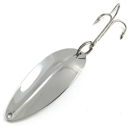 Tato vintage plandavka, zářící vysoce leštěným niklovým povrchem, se vyznačuje protáhlou kapkovitou siluetou s výrazným středovým žebrem probíhajícím po celé její délce. Main liner od společnosti TODDCO váží 12,5 g (2/5 oz) a měří 5,5 cm (2 1/4"), což z ní činí pozoruhodný příklad amerického rybářského náčiní od výrobce aktivního do roku 1980. Tento exemplář s produktovým kódem 5961 je ve vynikajícím stavu s hodnocením 5/5 a zachovává si zrcadlově čistý povrch kovového těla. Nástraha je vybavena robustním kroužkem a jedním trojháčkem na konci, zatímco hlava má přesně vyvrtané očko pro navázání vlasce. Masivní kovové tělo a aerodynamický profil, vyrobené v USA, jsou charakteristickými znaky klasických vláčecích plandavek té éry.
