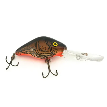 Tento hlubinný specialista o hmotnosti 14 g (1/2 oz) se vyznačuje detailním hřbetem se vzorem raka, který přechází do zářivě oranžového břicha. Mann's 30+ Depth Plus, identifikovaný produktovým kódem 6810, je zkonstruován tak, aby dosahoval hloubek až 5 m (16,4 ft), což z něj činí spolehlivou volbu pro hlubinnou přívlač nebo trolling. Při délce 5,5 cm (2 1/4") je tělo osazeno velkou, průhlednou lopatkou, která usnadňuje jeho rychlý sestup do hloubky. Tento exemplář vyrobený v USA je ve stavu 5/5, vykazuje pozoruhodně čistou povrchovou úpravu a má dobře zachované původní trojháčky. Jako plovoucí model je vhodný pro plynulé vedení nebo techniku stop-and-go, kdy využívá svůj vztlak k odskočení od potenciálních vázek. Výrazně žluté oči na tmavé hlavě vytvářejí vysoce kontrastní vizuální spouštěč.