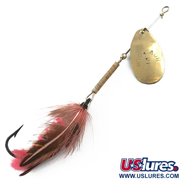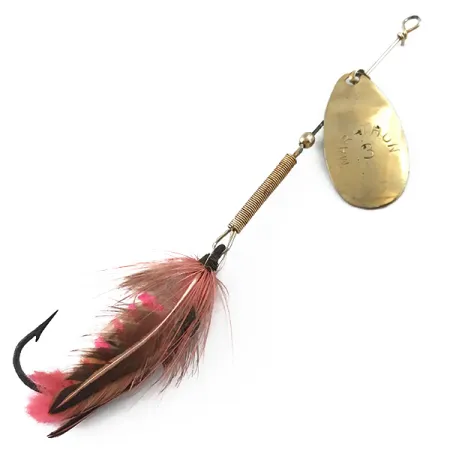 Pozlacení na ražené rotační lístku efektivně odráží světlo u této klasiky z Wisconsinu od společnosti Marathon Bait Company. S hmotností 10g (1/3oz) se Marathon 3 vyznačuje charakteristickým tělem z vinutého drátu, které dodává váhu a strukturu jeho 10cm (4") rámu. Nástraha s produktovým kódem 5564 představuje výrobní dědictví značky, která vybavovala rybáře v letech 1929 až 1979. Jednoháček je osazen kombinací přírodního hnědého a jasně růžového peří pro vytvoření většího vizuálního profilu. Každá součást, od mosazného závaží až po drátěnou osu, je ve stavu 5/5 a vykazuje čistý a dobře udržovaný povrch. Oválný lístek je jasně ražen názvem modelu, což je detail často vyhledávaný sběrateli amerických třpytek z poloviny století.