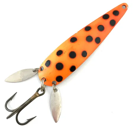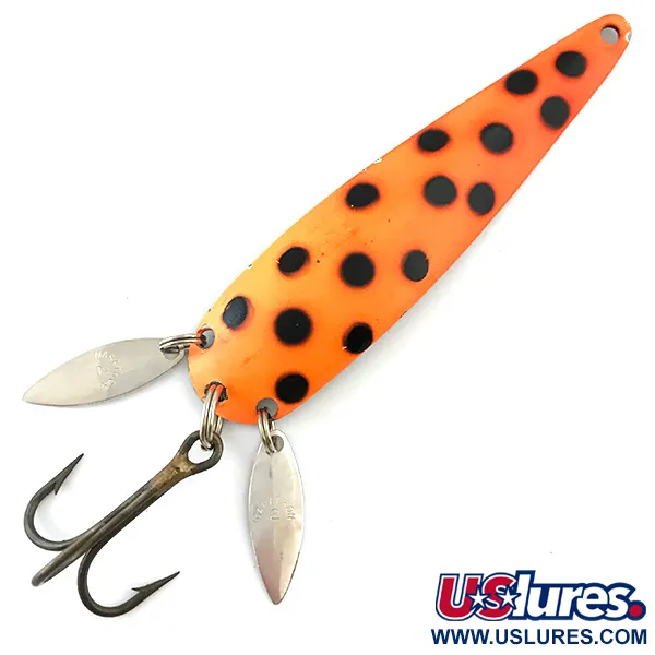 Tato vintage plandavka o hmotnosti 17 g (3/5 oz) je vyvedena ve výrazném červeno-černo-niklovém vzoru, který okamžitě upoutá pozornost. Tento nástraha, známá pod názvem Marathon UV (kód produktu 5600), je na zadních kroužcích vybavena dvojicí podlouhlých niklových vibračních lopatek, které mají vytvářet světelné odlesky a maskovat ostrý trojháček. Tyto speciální lopatky dodávají nástraze osobitý vizuální profil, zatímco kmitají podél 9,5 cm (3 3/4") dlouhého těla. Společnost Marathon Bait Company, pilíř výroby rybářského náčiní ve Wisconsinu v letech 1929 až 1979, jasně vyrazila svou značku na leštěnou niklovou zadní stranu tohoto exempláře. Nástraha s hodnocením stavu 5/5 má výjimečně čistý povrch s výraznými barvami a lesklým kováním bez koroze.