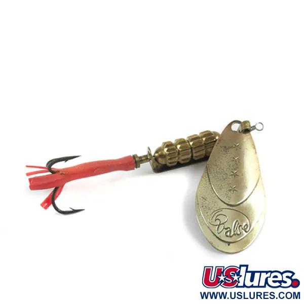 Tato rotační třpytka z poloviny minulého století, označená na zadní straně listu ražbou „BREVETE SGDG“ a „MADE IN FRANCE“, je ukázkou vysoké kvality francouzského řemesla, které si v 50. letech 20. století objednala americká společnost Marathon. Marathon Valse, identifikovaný pod produktovým kódem 2970, má konstrukci z masivní mosazi, od listu ve tvaru kapky až po čtyřstupňové zatížené tělo. Při délce 7,5 cm (3") a hmotnosti 12 g (2/5 oz) nabízí dostatečnou hmotnost pro daleké náhozy. List zdobí tři embosované hvězdy umístěné nad ozdobným logem „Valse“, což je estetický znak tohoto specifického modelu. Zářivě červená plastová bužírka kryje ramínko trojháčku a slouží jako bod útoku pro dravce. Nástraha v zachovalosti 4/5 vykazuje minimální opotřebení a udržuje si čistý povrch kovových částí i původního kování. List upevněný na třmínku je navržen tak, aby rotoval kolem středové osy, což v kombinaci se segmentovaným tělem zajišťuje vyvážený profil při přitahování.