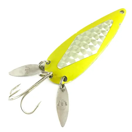 Tělo této 7,5 cm (3") plandavky pokrývá fluorescenční žlutá barva, která zajišťuje vysokou viditelnost při lovu v hlubších nebo kalných vodách. Nástraha o hmotnosti 17 g (3/5 oz) je vybavena texturovanou niklovou vložkou ve tvaru diamantu pro odraz světla, zatímco žlutý povrch při vystavení UV záření výrazně září. Společnost Marathon Bait Company, která působila ve Wisconsinu v letech 1929 až 1979, umístila na zadní část nástrahy dvě malé rotační lopatky „sonic blades“ ve tvaru vrbového listu. Tyto niklované lopatky maskují stříbrný trojháček a při navíjení vytvářejí dodatečné odlesky. Tento exemplář s produktovým kódem 6260 je v zachovalosti 5/5 se všemi původními prvky. Ražené značení na lopatkách potvrzuje původ z výrobní řady Marathon Bait Company.