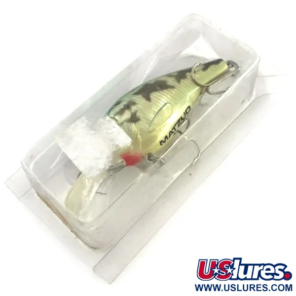Tento Matzuo Crank o hmotnosti 11 g se vyznačuje výrazným barevným vzorem Frog, který podtrhuje zaměření výrobce na realistické povrchové úpravy. Lakování přechází z tmavě skvrnitého zeleného hřbetu do lesklých boků se šupinatým vzorem a světlého břicha, přičemž název „MATZUO“ je jasně vyražen poblíž ocasu. Wobler měří 6 cm a je vybaven čirou plastovou lopatkou navrženou pro dosažení hloubek mezi 0,3 a 1,2 m. Přestože obal již není zapečetěný nebo kompletní, nástraha zůstává v nepoužitém stavu a nevykazuje žádné známky pobytu ve vodě nebo opotřebení. Hardware se skládá ze dvou trojháčků namontovaných na břiše a zesíleného kroužku pro upevnění vlasce. Je navržen jako plovoucí nástraha pro nahazování a představuje všestrannou volbu pro rybáře cílící na druhy jako okoun, pstruh nebo štika. Malý červený barevný stříkanec pod bradou poskytuje zaměřený bod útoku proti iridiscenci těla. Tento model 9308 představuje ostré, naddimenzované oči, které se v této éře staly charakteristickým znakem značky.