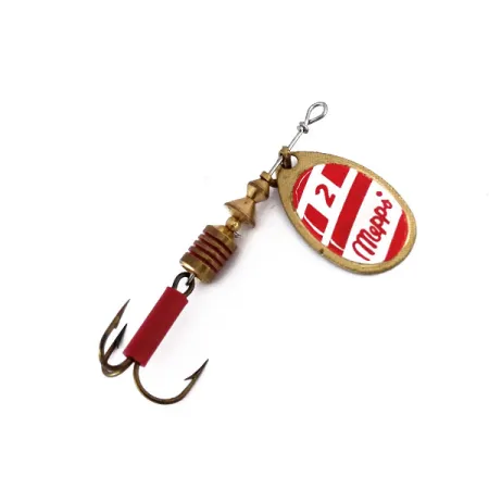Muzejní archiv: Mepps Aglia 2 Rotačka, Červená/Bílá/Mosaz, 4,5g, Mosazný Třmínek, #10075