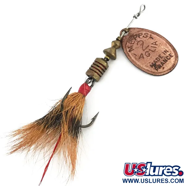 Muzejní archiv: Mepps Aglia 2 dressed Rotačka, Měď, 4,7g, Opeřený ocásek, #8814
