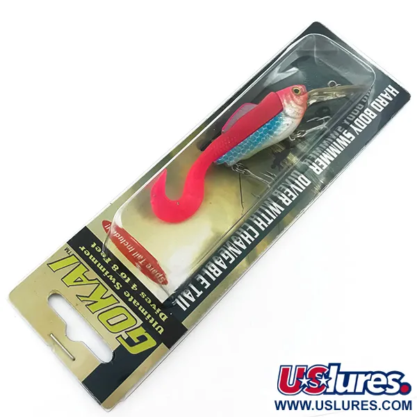 Tato nástraha s výrazným fluorescenčním červeným a modrým povrchem je klasickým příkladem designu z východního pobřeží USA od společnosti Montauk Mike's Lure Co. z Red Bank v New Jersey. Tento konkrétní model Montauk Mike's Gokai s produktovým kódem 5552 má hybridní konstrukci kombinující tvrdé tělo s měkkým, vyměnitelným silikonovým ocasem. S hmotností 1/2oz (14g) a délkou 2" (5cm) je nástraha konstruována pro všestrannost a navržena tak, aby dosahovala hloubek 1,2–2,5 m (4–8 stop). Barevné provedení je mimořádně působivé – kombinuje fluorescenční červenou hlavu a ocas s modře šupinatou střední částí, která přechází do světlého břicha. Sběratelé ocení, že materiály jsou UV aktivní, což zvyšuje viditelnost v hluboké nebo kalné vodě. V originálním balení je pod čirou potápěčskou lopatkou vidět náhradní ocas. Tento exemplář je nepoužitý v původním blistru, na jehož zadní straně jsou jasně vytištěny kontaktní údaje výrobce a adresa v New Jersey. Výbava zahrnuje břišní trojháček umístěný tak, aby vyvažoval přechod mezi tvrdým tělem a měkkým ocasem.