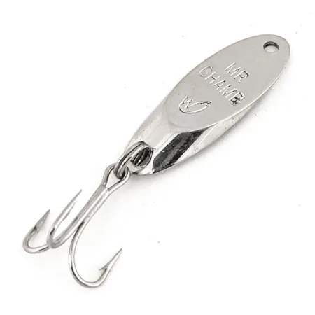 Leštěný poniklovaný povrch odráží světlo na štíhlém, aerodynamickém profilu této klasické americké plandavky. Tento exemplář o hmotnosti 1/4 oz (7 g) a délce 1 1/2" (4 cm) nese výraznou ražbu „MR CHAMP“ spolu se signaturním logem ptáka. Tato označení představují významnou éru společnosti Weber, výrobce se stoletou historií v USA a Kanadě předtím, než tento model převzala firma Luhr Jensen. Konstrukce ze silného kovu je osazena ostrým trojháčkem spojeným robustním kroužkem, což z ní činí spolehlivou volbu pro daleké nahazování nebo vertikální jigging. Nástraha s produktovým kódem 12747 je ve stavu 5/5 a udržuje si brilantně reflexní povrch po celém těle.