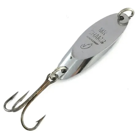 Do poniklovaného povrchu této 4,5 cm (1 3/4") plandavky je jasně vyraženo ikonické logo ryby spolu s brandingem Mr Champ. Tato americká nástraha, katalogizovaná pod kódem 9217, váží 10 g (1/3 oz), což je velikost tradičně oblíbená pro svou univerzálnost při lovu různých sladkovodních druhů. Vyrobeno společností Weber, značkou se stoletou tradicí v USA před jejím převzetím firmou Luhr Jensen, přičemž kovové zpracování odráží poctivou konstrukci hardwaru z poloviny minulého století. Povrchová úprava zůstává jasná, doplněná pevnými kroužky, které zajišťují očko na vlasec i koncový háček. Přestože originální trojháček vykazuje na ramínku přirozené ztmavnutí vlivem stáří, hroty zůstávají ostré a kovové tělo je výjimečně čisté, což odpovídá hodnocení stavu 5/5. Aerodynamický, zužující se tvar je navržen speciálně pro daleké nahazování nebo vertikální jigging v hlubší vodě.