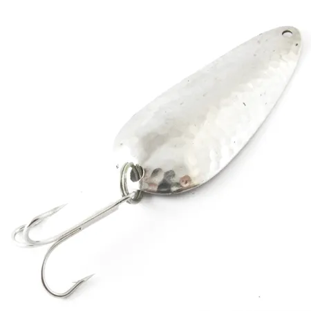 Šupiny z tepaného niklu zachycují a odrážejí světlo na 7,5cm (3") těle této klasické plandavky vyrobené v Minneapolis. S hmotností 14 g (1/2 oz) je Nebco FlashBait 166 robustní nástraha vhodná pro nahazování i trolling. Na konkávní straně zůstává zřetelná ražba 'NEBCO FLASH BAIT 166 MPLS. MINN', která identifikuje její původ v historii výroby rybářského náčiní v Minnesotě. Tento exemplář s kódem produktu 4156 je ve stavu 4/5 s čistým povrchem, který vykazuje pouze mírné známky manipulace. Koncová výbava se skládá z jednoho kroužku spojeného s velkým trojháčkem na ocasu. V horní části zužujícího se profilu je vyvrtán přesný otvor pro bezpečné připojení ke karabince nebo návazci.