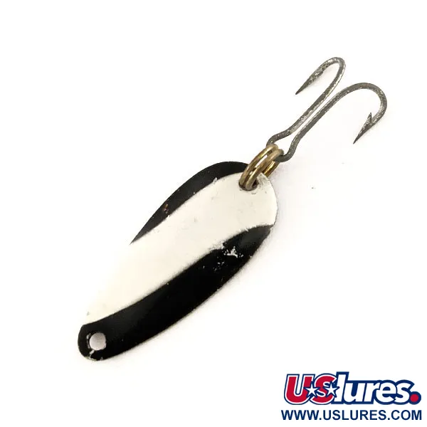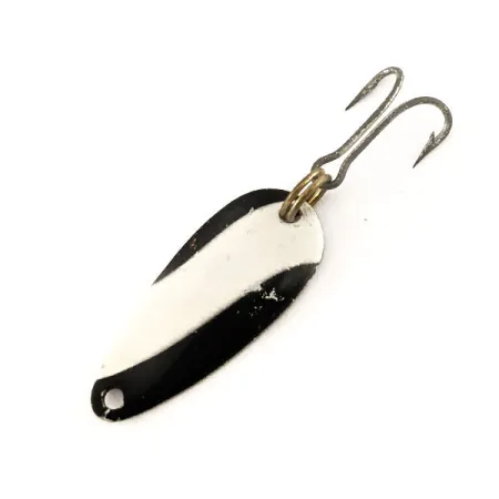 S délkou pouhých 2,2 cm (0 3/4") je Nebco Flashbait 466 klasická americká plandavka navržená pro ultralehkou přívlač. Přední strana se vyznačuje výrazným černo-bílým diagonálním pruhováním na niklovém podkladu, zatímco zadní strana nese jasně čitelnou ražbu „NEBCO FLASHBAIT 466“. S hmotností 1 g (1/32 oz) vyžaduje tato nástraha tenké vlasce a citlivé pruty pro efektivní nahazování. Osazení tvoří jeden trojháček připevněný odolným mosazným kroužkem. Tento exemplář vedený pod kódem 12249 je ve stavu 5/5, s krásně zachovalým povrchem a ostrým, čitelným písmem.