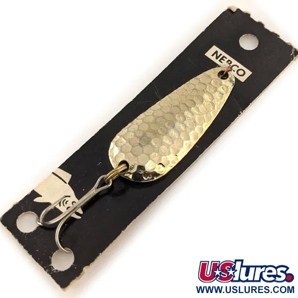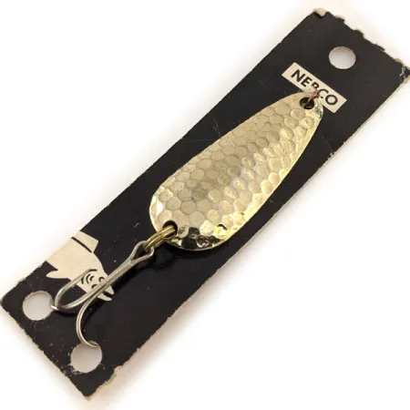 Povrchová úprava v podobě tepaného zlata, jako je ta na této 14g (1/2oz) plandavce, je klasickou volbou pro vytvoření výrazného odlesku, který pod vodou zachycuje světlo. Nebco Tor-P-Do 2 s produktovým kódem 11622 měří přesně 5cm (2") a na své konvexní straně má výrazně texturovaný, tepaný povrch. Tento exemplář je nepoužitý a zůstává v původním stavu na černé kartonové podložce zdobené historickým názvem značky Nebco a stylizovanou ilustrací ryby. Nástraha se skládá z masivního kovového těla doplněného ostrým trojháčkem připevněným pomocí robustního kroužku v zadní části. Její kapkovitý tvar je navržen pro stabilitu při nahazování i trollingu. Pozlacení je jasné a čisté a odráží řemeslné zpracování typické pro americké rybářské náčiní z poloviny století.