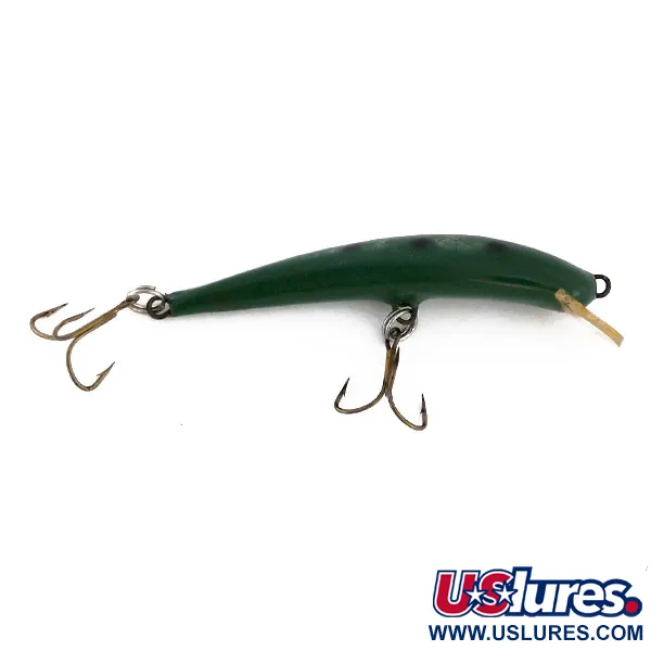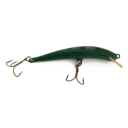 Ručně vyřezávané ze dřeva s charakteristickým zploštělým horním profilem, 8g (1/4 oz) tělo tohoto Nils Master Invincible Floating představuje vrchol finského designu nástrah. Sytě zelený povrch s tmavým značením pokrývá 8cm (3 1/4") tělo, katalogizované pod produktovým kódem 10218. Tato tichá, nechrastící nástraha je navržena pro všestrannost a funguje efektivně jak při nahazování na pstruhy, tak při trollingu na větší predátory, jako jsou lososi a štiky. Čirá plastová lopatka s razítkem výrobce je bezpečně zasazena tak, aby vedla nástrahu do hloubky ponoru 2 m (6,5 ft). Vzhledem k hodnocení 5/5 zůstává exteriér výjimečně čistý, což dokazuje vysoce kvalitní lak a pečlivé uchování. Dva trojháčky jsou připevněny pomocí pevných kroužků, připraveny k lovu. Širokoboká geometrie je funkčním znakem tohoto konkrétního modelu, který má poskytovat zřetelnou siluetu při pohledu zespodu.