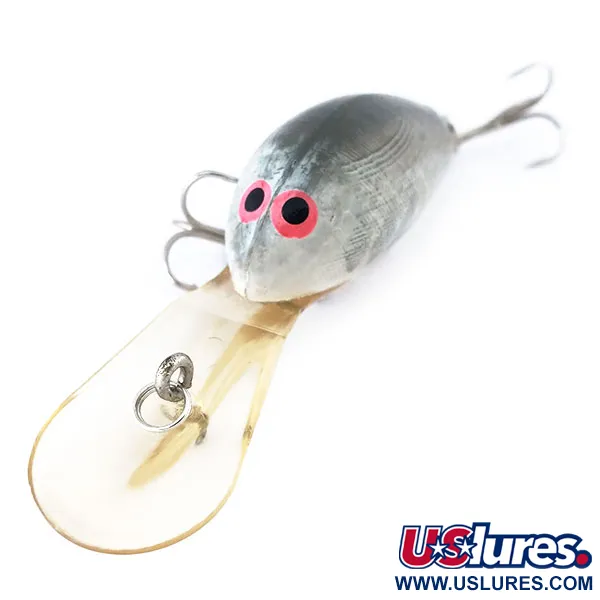 Tento raný výtvor Billa Normana o hmotnosti 1/3 oz (10 g) představuje významnou éru amerických potápivých nástrah. Šedé tělo o délce 2 palce (5 cm) vykazuje jemně detailní šupinatý vzor spojený s charakteristickýma velkýma růžovýma očima, které sběratelé okamžitě rozpoznají. Tento plovoucí model s produktovým kódem 10994 je navržen pro ponor do hloubky 2,4 m (8 stop), což z něj činí všestrannou volbu pro přívlač i trolling. Osazení je pozoruhodně zachovalé a hodnocení stavu 5/5 zdůrazňuje, jak čistý zůstal povrch. Čiré, protáhlé kormítko je pevně integrováno do těla a navazuje na původní trojháčky, které nenesou žádné známky stáří.