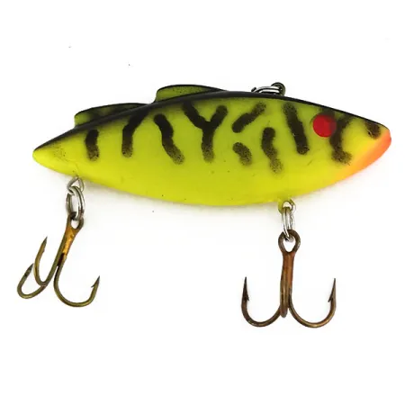 Svítící vlastnosti definují speciální charakter tohoto bezlopatkového wobleru (lipless crankbait), který živě reaguje pod UV světlem. S váhou 1/2 oz (14 g) a délkou 3" (7,5 cm) je tento exemplář Norman N-Ticer UV, identifikovaný pod kódem produktu 9718. Vnější stav je 5/5 a vykazuje vzor Fire Tiger v původním, sytém stavu s ostrými svislými černými pruhy na fluorescenčním žlutozeleném těle a výrazným červeným okem. Dva robustní trojháčky jsou připevněny pomocí kroužků k břichu a ocasu, což je typické pro vysoce kvalitní náčiní vyrobené v USA v této éře. Jako potápivý bezlopatkový wobler neboli „rattlin“ umožňuje lov v proměnlivé hloubce v závislosti na rychlosti navíjení, což z něj činí univerzální volbu pro nahazování i trolling. Rybáři po tomto typu hlučné nástrahy často sahají při lovu dravců, jako jsou štiky, okouni nebo pstruzi, v hlubší vodě nebo při slabém osvětlení, kde vynikne funkce svícení. Pověst značky Norman v oblasti výroby spolehlivých nástrah je patrná z čistých linií a solidní konstrukce tohoto modelu N-Ticer.