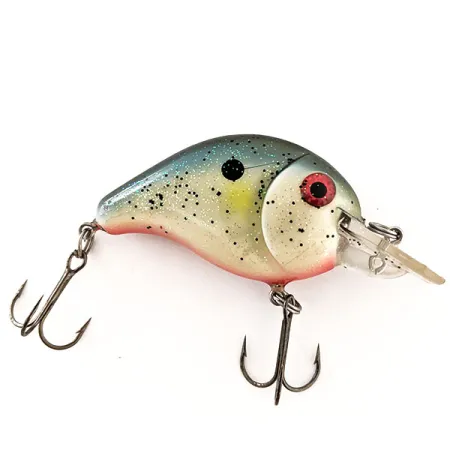 Třpytivé stříbrno-zlaté šupiny doplňují tlumený olivově modrý hřbet tohoto kompaktního wobleru, který ve vodě vytváří vysoce reflexní profil. Tento Norman Thin N s produktovým kódem 11986 je všestrannou volbou pro rybáře cílící na candáty, okouny nebo štiky při přívlači i trollingu. S délkou 5 cm (2") a hmotností 12 g (2/5 oz) je nástraha navržena tak, aby dosahovala hloubky 1,5 m (5 ft). Povrchová úprava je detailně zpracována s jemným černým tečkováním a výrazným černým bodem na boku, což doplňují jasně červené oči kontrastující se světlým břichem. Konstrukce zahrnuje čirou lopatku a vnitřní chrastící systém pro akustické působení. Tento konkrétní kus má hodnocení stavu 5/5 a nevykazuje žádné známky opotřebení na svém v USA vyrobeném těle a osazení. Ostré trojháčky jsou připevněny pomocí pevných kroužků v původní tovární konfiguraci.