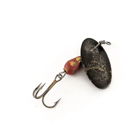 Tento exemplář o celkové délce 4,5 cm (1 3/4") má unikátní kapkovité tělo v červené barvě se žlutými tečkami. Charakteristickým znakem designu Panther Martin je list bez třmínku namontovaný přímo na drátěné ose, který je zde patrný na tmavém kovovém povrchu. Na listu s italským původem jsou vidět autentické stopy jeho historie, zatímco trojháček zůstává pevně připevněn k zadnímu očku. S váhou 2,5 g (3/32 oz) patří tato nástraha do lehké třídy rotaček, které v polovině minulého století změnily lov na potocích. Vzhledem k hodnocení stavu 4/5 si lak na zatíženém těle dobře zachoval svou barvu i přes očekávané ztmavnutí kovových prvků. Sběratelé by měli věnovat pozornost kódu produktu 12960, který představuje klasický příklad raného italského inženýrství nástrah.